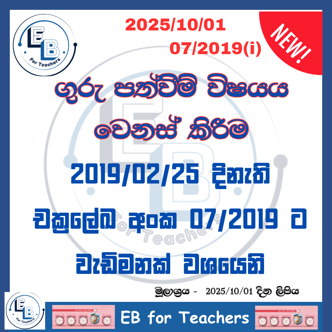 Guru Pathweem Wishaya Wenas kireema October 4, 2025October 16, 2025 admin Changing Teachers’ Appointment subject – 07/2019 (i) Download Letter – (Published on 01st of October 2025) Changing Appointment Subject Click for More Derails